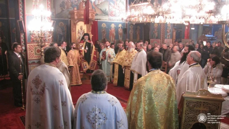 Απόψε εψάλει Mέγας Αρχιερατικός Εσπερινος με αρτοκλάσια χοροστατούντος του Σεβ. Μητροπολίτου Κορίνθου κ. Διονυσίου πλαισιούμενου από ιερείς της περιοχής, παρουσία του Αντδημάρχου Ευρωστίνης κ. Ανδρέα Καραβά και πλήθους πιστών