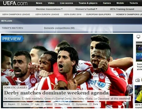 Πρώτο θέμα στην επίσημη ιστοσελίδα της UEFA είναι το ελληνικό «κλάσικο» μαζί με τα άλλα ευρωπαϊκά ντέρμπι.