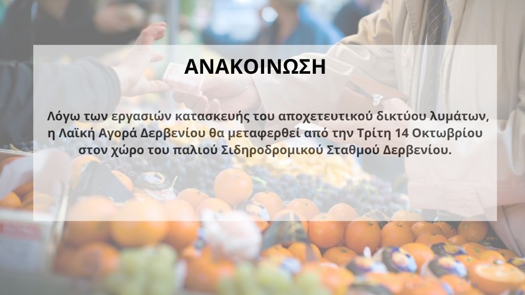 Αλλαγή Τοποθεσίας της Λαϊκής Αγοράς Δερβενίου από 14 Οκτωβρίου